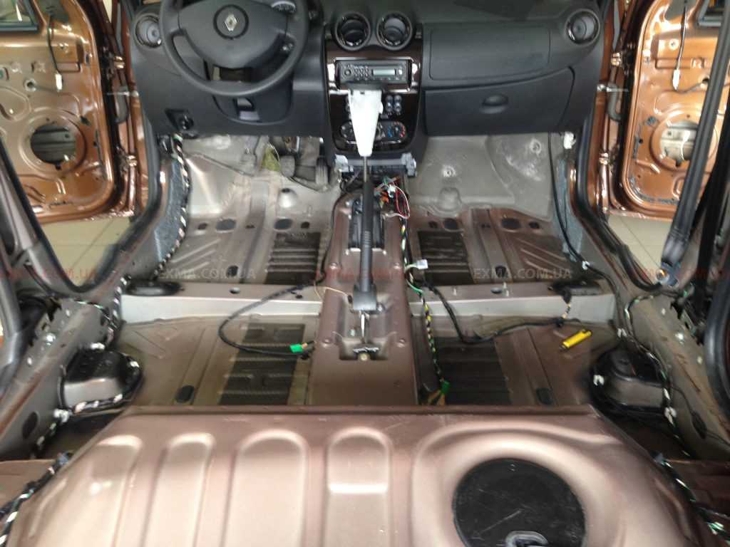 Аккуратно разобрали весь салон автомобиля, осталась только передняя панель. Первый слой битумный материал с фольгой. Сверху него, вторым слоем укладываем с феном Вибропласт Q1. Затем пластиковые обшивки багажника, дверей также обесшумлены и проклеены антискрипным материалом. Аккуратно собрали.